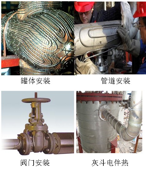 電熱帶的優勢很多,其具體分類有自限溫電熱帶,恒功率電熱帶,MI加熱電纜,伴熱復合管。可針對各種防爆易燃,腐蝕區域的管道進行保溫伴熱。并且針對消防,太陽能熱水器,石油,電廠,環保在線監測等開發了專用產品。此外,電熱帶可實現不同設備,部件的伴熱,以下有: