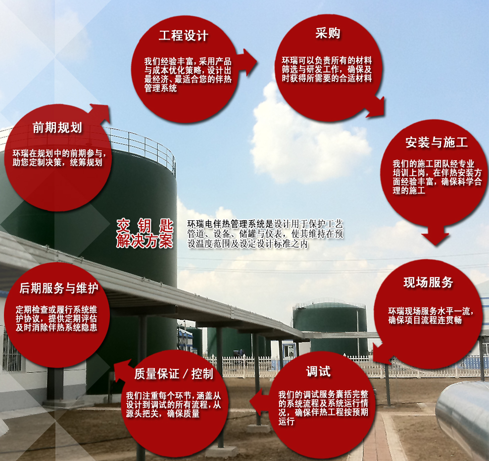 環瑞電伴熱工程設計、施工,采用產品與成本優化策略,設計出最經濟、最適合您的伴熱管理系統,施工團隊經專業培訓上崗,專業高效,確保科學合理的施