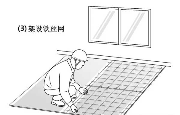 2、鋪設鋼絲網,用塑料扎帶連接鋼絲網;