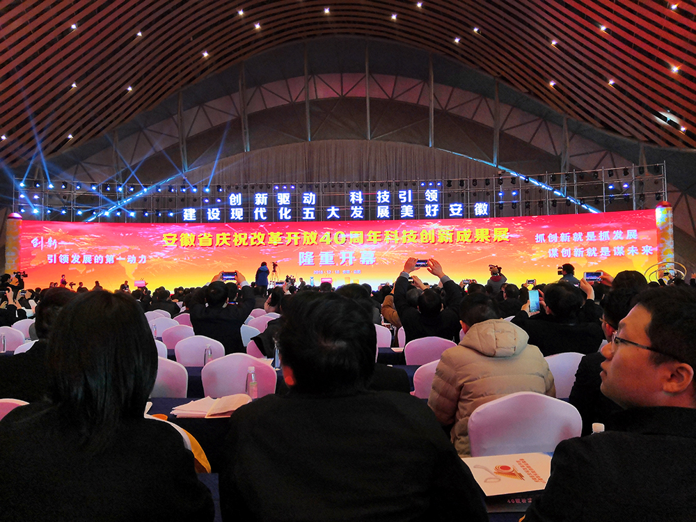 1218日,安徽省慶祝改革開放40周年科學創新成果展在合肥濱湖國際會展中心拉開序幕,此次展會以“創新驅動,科技引領,建設現代化五大發展美好安徽”為主題,集中展示安徽省改革開放40年來的創新歷程、創新舉措、創新成就。
