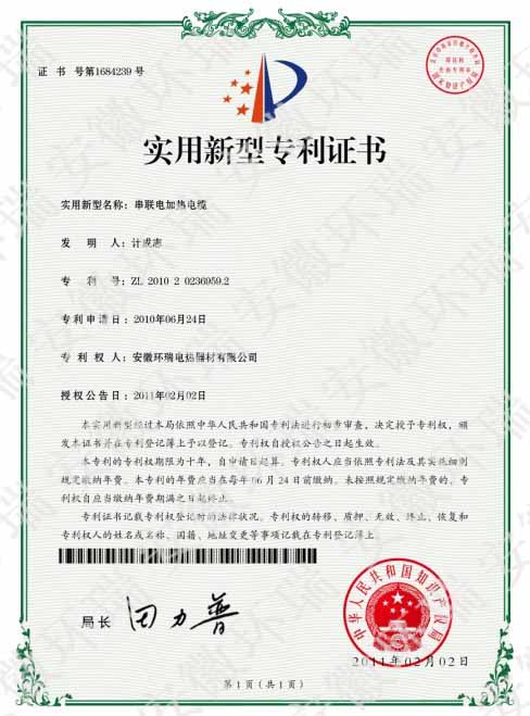 安徽環(huán)瑞串聯(lián)恒功率電伴熱帶國(guó)家電熱帶專利產(chǎn)品介紹